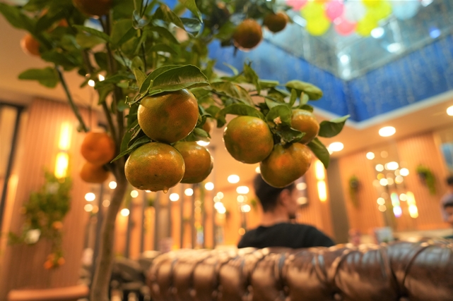 Muş'ta bir kafe işletmecisinin saksıda yetiştirdiği mandalina ağaçları, hem doğal görüntüsü hem de ikram edilen meyveleriyle müşterilerin yoğun ilgisini çekiyor.