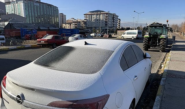 Park halindeki araçların camlarının buzla kaplandığı kentte, bazı vatandaşlar araçlarını soğuktan korumak için üzerlerine battaniye örttü.