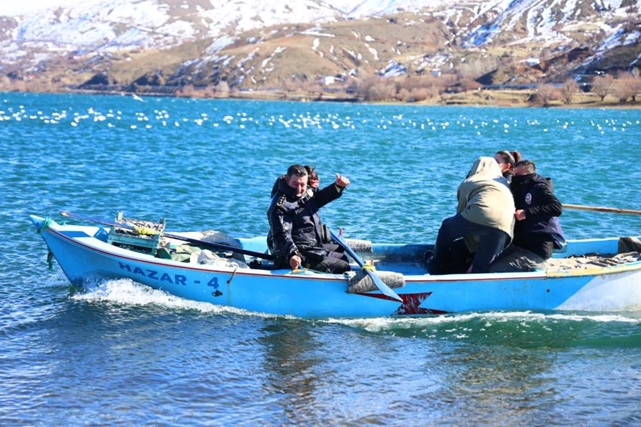 Elazığ Hazar Gölü'ndeki Tavşan Adası'nın sakinleri, çetin kış şartlarında yiyecek bulamayınca devreye polis ekipleri girdi. Ekipler, dalgalara rağmen adaya ulaşarak tavşanları sebzeyle, aç kalan martıları ise balıkla besledi.