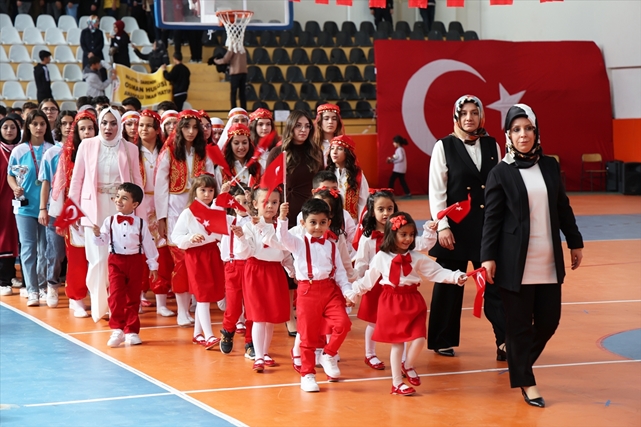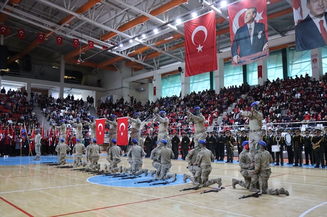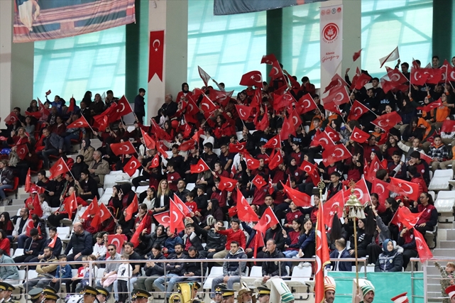 Kentteki törenler, olumsuz hava şartları nedeniyle Merkez Spor Salonu’nda yapıldı.