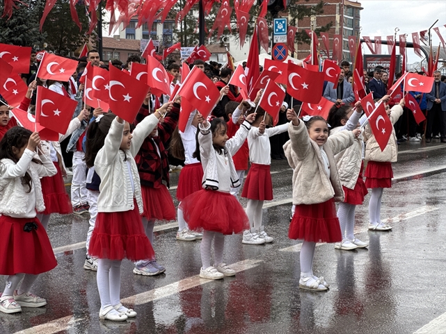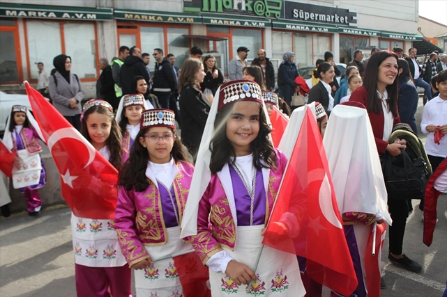 Sakarya İlkokulu bahçesinde düzenlenen törende, saygı duruşunda bulunuldu, İstikal Marşı okundu.