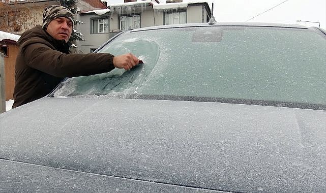 Termometrelerin gece eksi 11 dereceyi gösterdiği kentte, buzlanma oluştu.