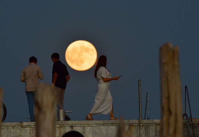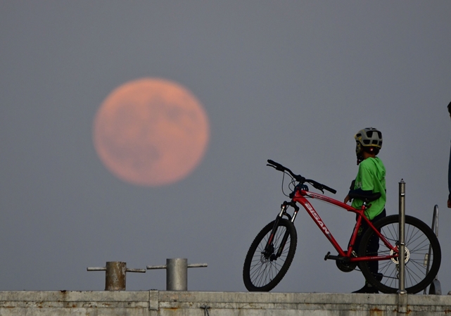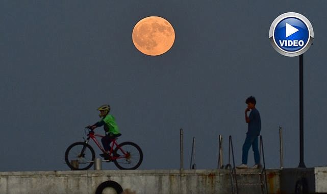 İskelede dolunay manzarasında bisiklet süren Hasan Hüseyin Erkoç, "Ben iskelede bisiklet sürerken dolunay çıktı ve çok güzel bir manzara oluştu" dedi.