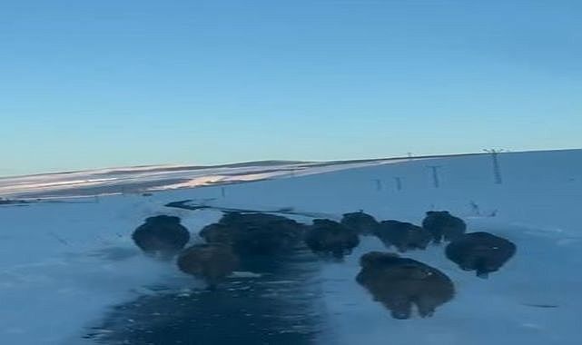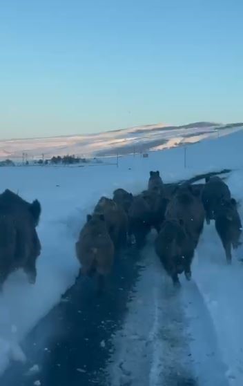 Merkeze bağlı Akyaka köyü yolunda sabah saatlerinde otomobiliyle seyreden Vedat Özgür'ün önüne aniden bir domuz sürüsü çıktı. Yol boyunca ilerleyen domuzlar bir süre aracın önünde koşarak ilerledi. Sürücü Özgür ise hayvanlara zarar vermemek için aracın hızını düşürerek ilerledi. Bir süre sonra yol kenarındaki karla kaplı alana yönelen domuzlar gözden kayboldu. Yaşanan ilginç anlar sürücünün cep telefonu kamerasıyla kayıt altına alındı.
