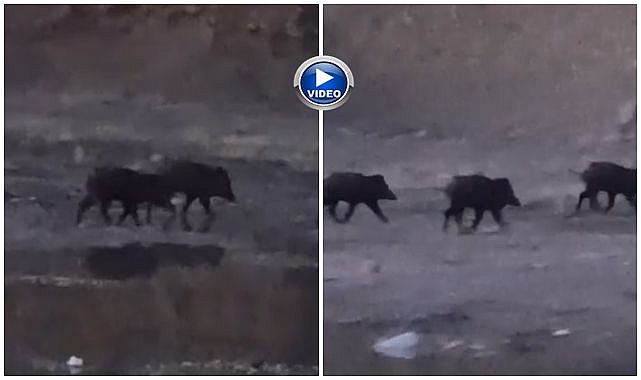 Hakkari'nin Yüksekova ilçesinde sürü halinde dolaşan yaban domuzları, cep telefonu kamerasıyla kayıt altına alındı.