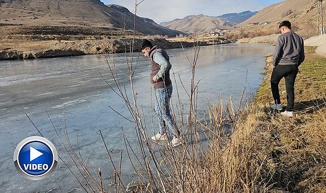 Van'ın Erciş ilçesinde etkili olan dondurucu soğuklar nedeniyle Zilan Çayı dondu.