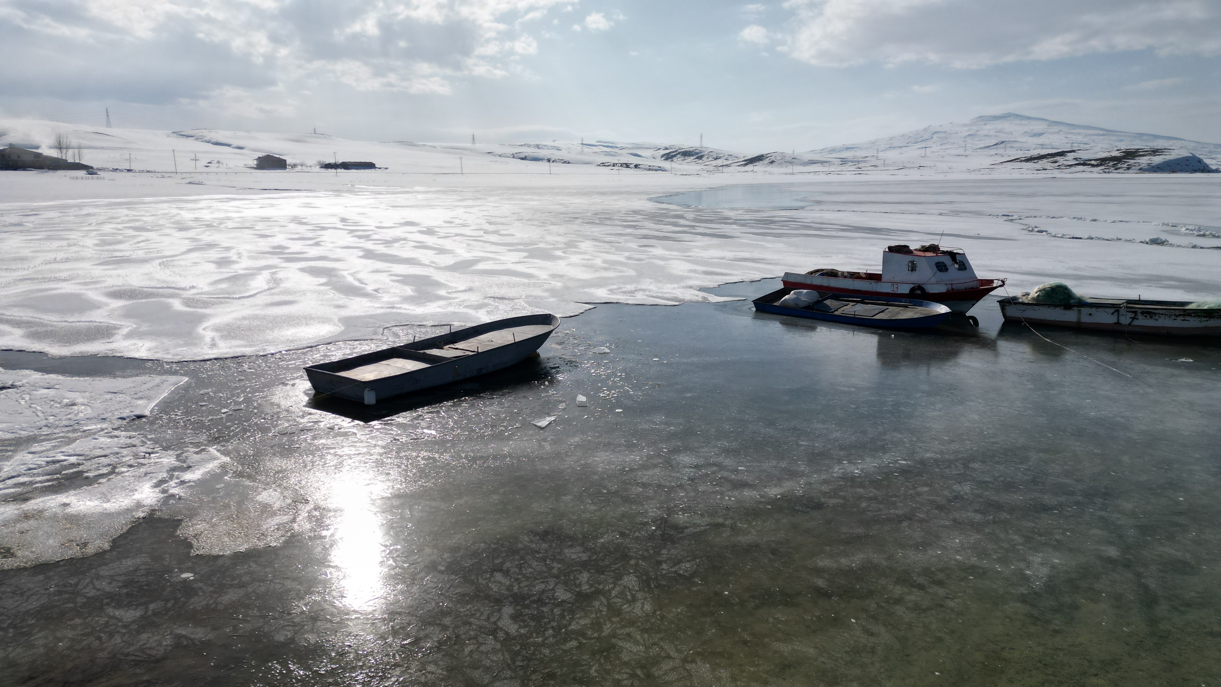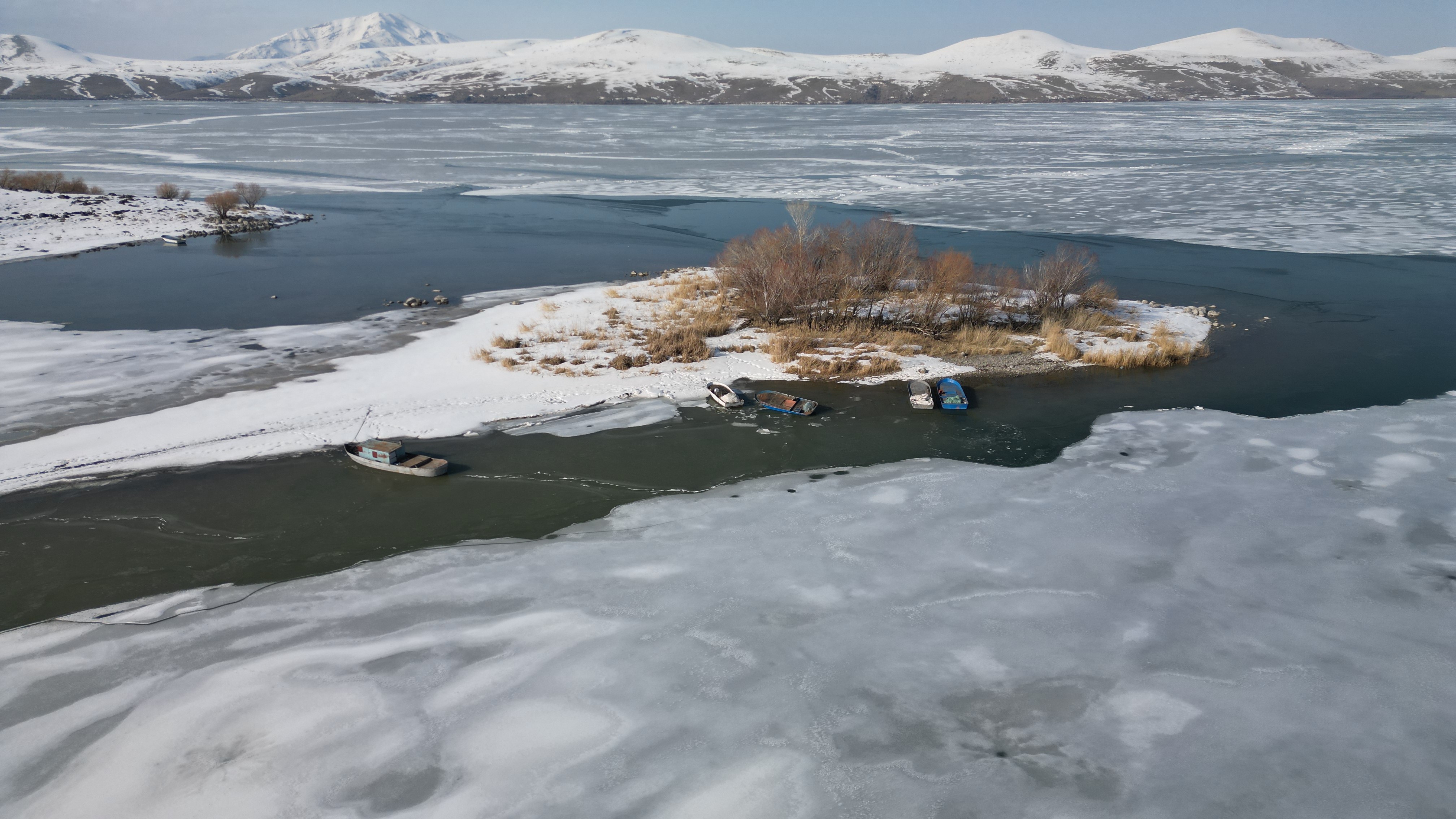 Kış aylarında şiddetli soğuklarla 40 santimetre kalınlığında buz tutan gölün yüzeyi mart ayının yaklaşmasıyla çözülmeye başlıyor. Göl yüzeyindeki buz tabakasının çözülmesiyle birlikte büyük kütleler halinde göl yüzeyinde yüzen buz parçaları ve arasında avlanmaya çalışan balıkçı tekneleri, seyrine güzel görüntüler oluşturdu.