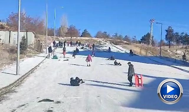 Hava sıcaklığının gündüz saatlerinde eksi 10 dereceye kadar düştüğü ilçede, kar yağışının ardından oluşan beyaz örtü çocuklar için doğal bir eğlence alanına dönüştü. İlçede yokuş aşağı uzanan alanlarda toplanan çocuklar, kızakla kayarak keyifli anlar yaşadı.