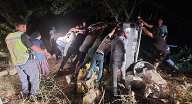 Dereye uçan otomobilden film gibi kurtarma çalışması