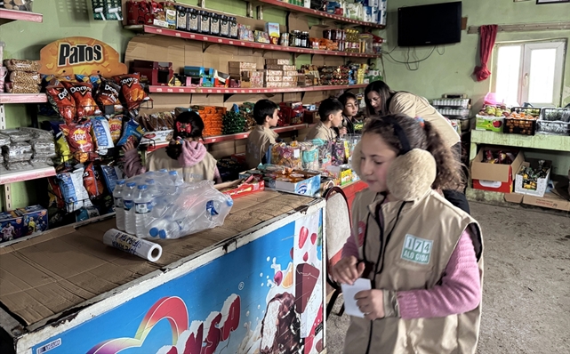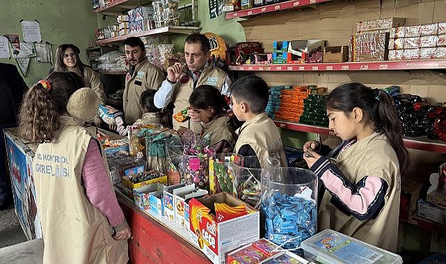 Daha sonra gıda denetim aracına binen çocuklar, yakalarına astıkları kart ve üstlerindeki yelekle, köydeki bakkalda satışı yapılan ürünlerin denetimini gerçekleştirdi.