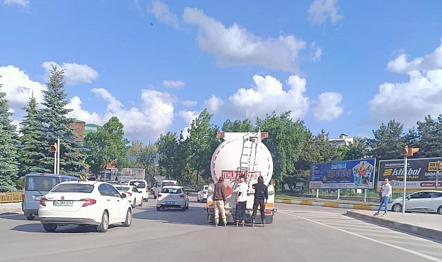 İş insanı Ahmet Gölleroğlu ve gazeteci ağabeyim Selahattin Şener ile seyir halindeyken rastladık bu görüntüye. Yüreğimizi ağzımıza getiren bu görüntüyü Selahattin ağabey hem de trafiğin yoğun olduğu, sık sık kazaların yaşandığı Üniversite kavşağında çekti. Ayaklarında tekerlekli paten bulunan 3 hayta genç, olası kazalardan habersiz hem de mazot yüklü ve üzerinde ‘TEHLİKELİ MADDE’ yazan bir tankerin arkasına takılmış, yoğun trafiğin içinde adeta yaşamla kumar oynuyorlar. Sanıyorum Dadaşkent’ten beri bu tankerin arkasına sarkış şekilde seyahat eden ve kendilerince eğlenen gençler, sadece bizim değil, gören herkesin de yüreklerini ağzına getirdi. Durumun vehameti ve de gençlerin sağlığı için ‘’Emi emi, arkaya kamçı’’ diyesi geliyor insanın ama o sesi duyacak sürücüyü ara ki bulasın!