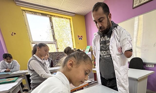 Yaşam mücadelesiyle çevresindekilere örnek olan Alkan, görev yaptığı okulda öğrencilerinin resme olan ilgisini artırdı.