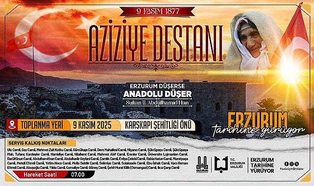 Katılımcılar, sabahın ilk ışıklarıyla birlikte ellerinde Türk bayraklarıyla yürüyerek Aziziye Tabyaları’na ulaşacak. Etkinlik boyunca şehitler için dualar okunacak, Aziziye kahramanları anılacak.