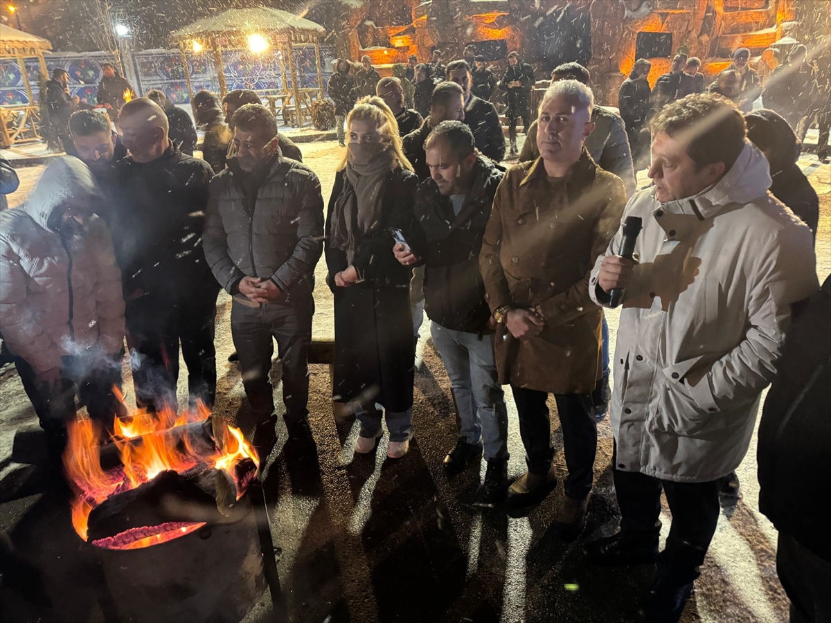 Ilıca Termal Tesisleri’nde gerçekleştirilen programda, açık alanda kar yağışı altında toplanan gazetecilere sıcak ikramlarda bulunuldu. Etkinlik kapsamında düzenlenen havai fişek gösterisi renkli görüntülere sahne olurken, müzik eşliğinde keyifli anlar yaşandı.