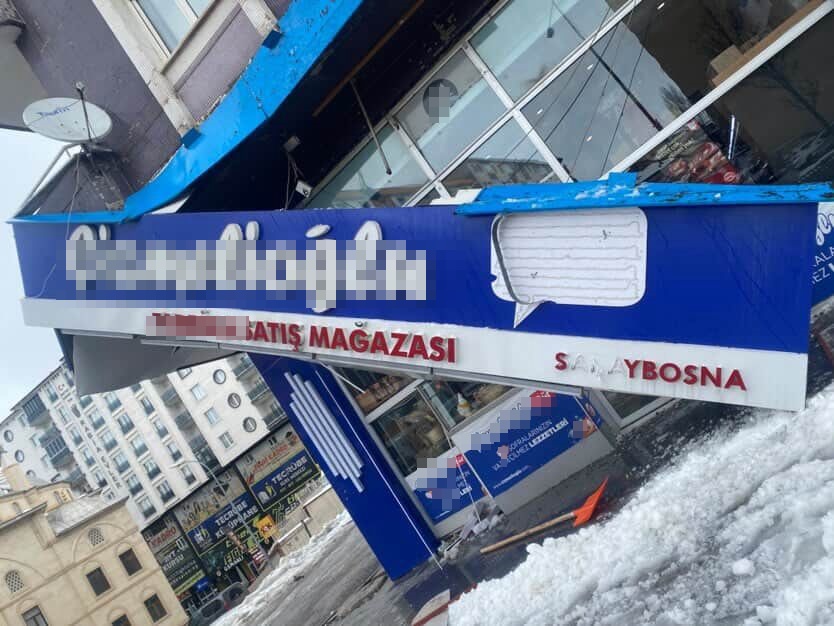 Aynı gün sabah saat 09.00 sıralarında Yakutiye ilçesi Muratpaşa Mahallesi Saraybosna Caddesi’nde de benzer bir olay yaşandı. 7 katlı bir apartmanın çatısından kopan buz parçaları, zemin katta bulunan bir süt ürünleri firmasına ait tabelayı yerinden söktü. Kilolarca ağırlıktaki tabela o sırada iş yerinin önünden geçen genç bir erkek şahsın başına düştü.