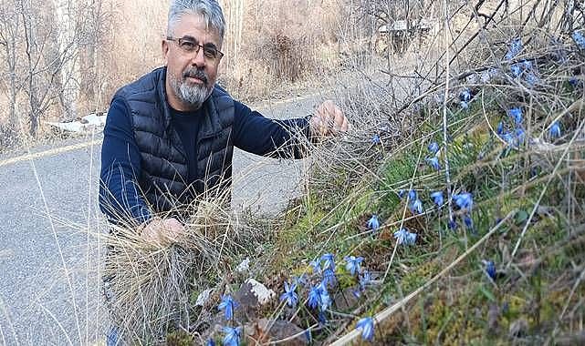 Olur ilçesi Ormanağzı Mahallesi'nde kar çiçekleri açtı