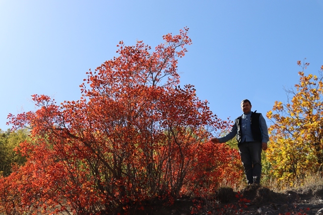 Erzurum'un Oltu ilçesine bağlı Arıtaş Mahallesi'nde sonbaharın gelişiyle birlikte doğa adeta kırmızıya büründü. Meralarda bulunan kaplaç (yabani kiraz) ağaçları, bu yıl sarı yerine kırmızıya dönen yapraklarıyla kartpostallık görüntüler oluşturdu.