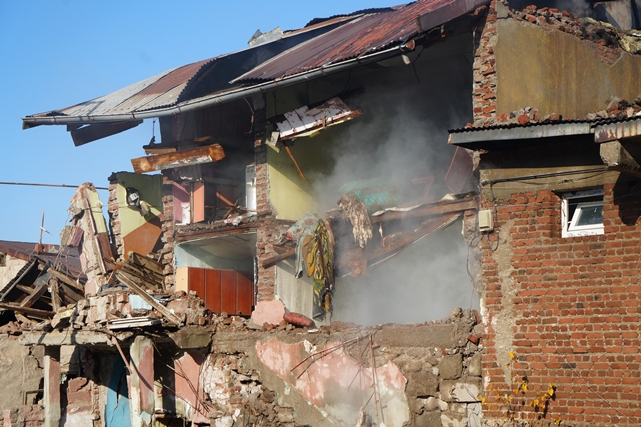 İhbar üzerine bölgeye çok sayıda itfaiye ekibi, sağlık ve polis sevk edildi. Ekipler güvenlik önlemleri alarak enkaz alanında çalışma başlattı. Yaralı şahıs ambulansla hastaneye kaldırılırken, bölgede yaşanabilecek patlamaya karşı güvenlik tedbirleri alındı.