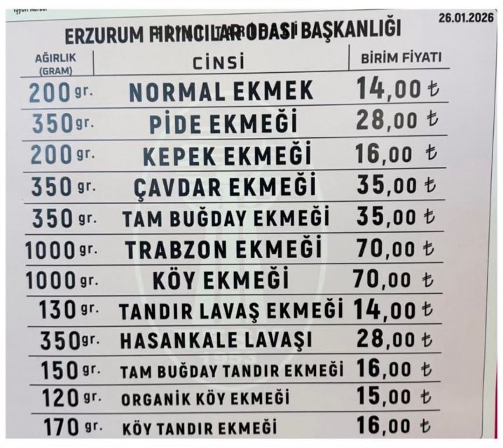 26 Ocak 2026 tarihi itibarıyla yürürlüğe giren yeni fiyat listesiyle birlikte yalnızca normal ekmekte değil, birçok ekmek çeşidinde de fiyat artışı yaşandı. Güncellenen tarifede özellikle pide, çavdar ve tam buğday ekmeklerindeki yükseliş dikkat çekti.
