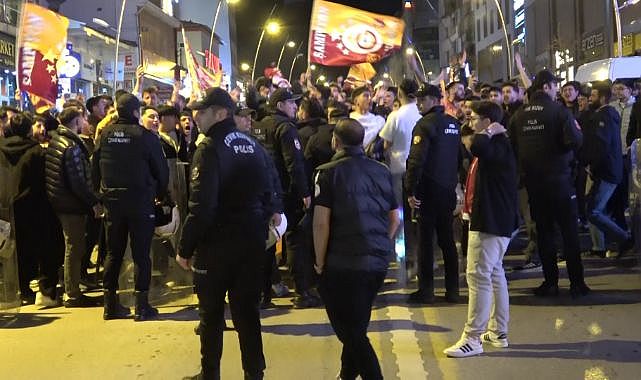 Maçın bitiş düdüğünün ardından Cumhuriyet Caddesi’nde toplanan Galatasaray taraftarları tezahüratlarla hem galibiyeti hem de avantaj sağladıkları şampiyonluğu erkenden kutladılar.