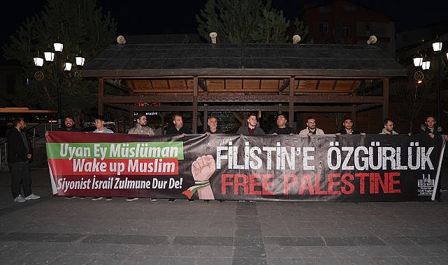 İHH İnsani Yardım Vakfı Erzurum Şubesince, akşam namazının ardından Mustafa Lala Paşa Camisi'nin yanındaki alanda İsrail'in filoya yönelik saldırısına ilişkin basın açıklaması yapıldı.