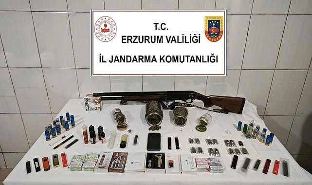 Erzurum Cumhuriyet Başsavcılığı koordinesinde Pazaryolu ilçesinde gerçekleştirilen operasyonda; 167 gram kubar esrar, 8 gram kokain, 1 adet uyuşturucu kullanma aparatı, 12 adet uyuşturucu madde kullanıldığı değerlendirilen boş likit şişesi, 1 adet ruhsatsız av tüfeği, 67 adet 12 cal. av tüfeği fişeği, 29 adet kaçak elektronik sigara cihazı, 19 adet kaçak elektronik sigara cihazı başlığı ve 1 adet suçta kullanıldığı değerlendirilen cep ele geçirildi.