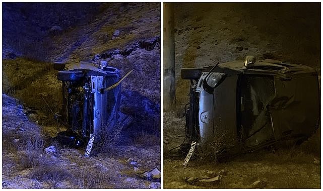N.B. idaresindeki 27 AFL 80 plakalı otomobil, Erzurum-Ağrı kara yolu Canlı Hayvan Borsası mevkisinde kar yağışı nedeniyle kayganlaşan yoldan çıkarak devrildi.