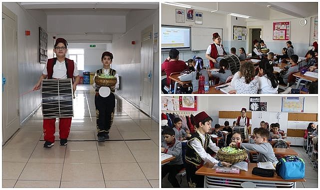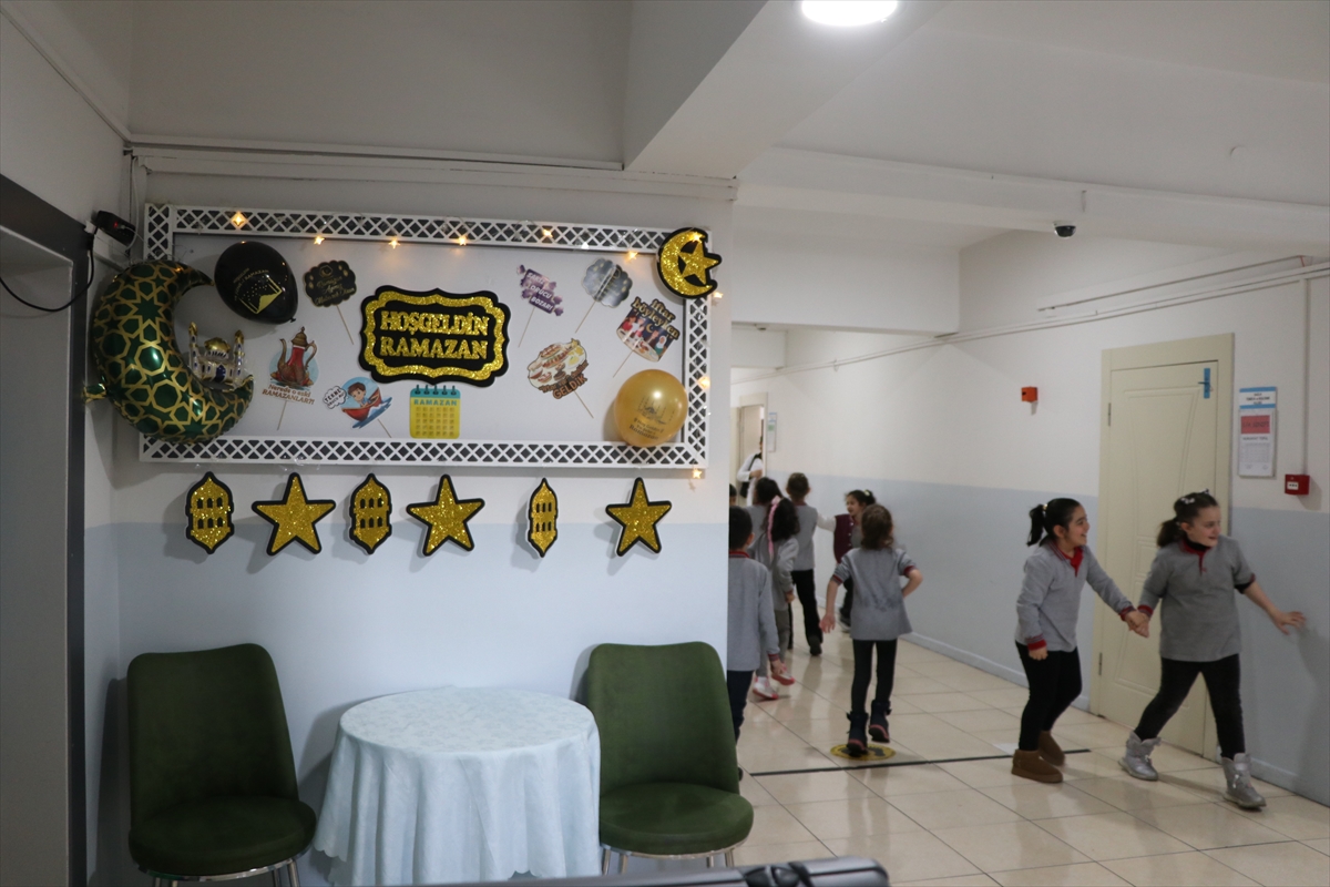 Okulda "Ramazan Sokağı" adı verilen özel alan da oluşturan öğrenciler, davul çalarak on bir ayın sultanı ramazanı sınıf ve koridorda "ramazan geldi hoş geldi" nidalarıyla ve manilerle karşıladı.