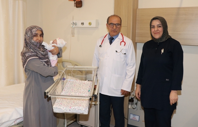 Yaklaşık 2,5 kilograma ulaşan Hüma Hatun adı verilen bebek, annesinin kucağında taburcu edildi.