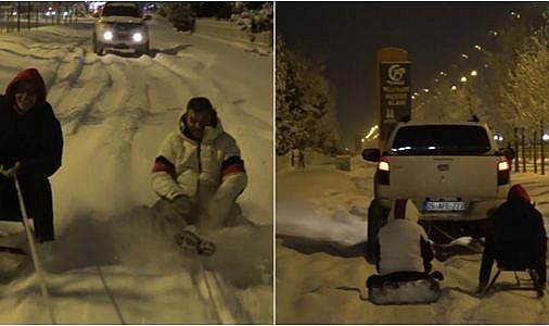 Erzurum Off-Road Doğa Sporları ve Macera Ekibi, kent merkezinde 30-40 santimetreyi bulan karı fırsata çevirdi. Araçlarının arkasında bağladıkları kızak ve lastik botlarla kar içinde kayan off-roadçular kışın güzelliğini hep birlikte yaşadı.
