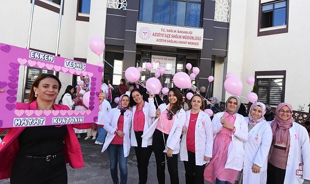 Ererken teşhisin hayat kurtardığına işaret eden Aziziye İlçe Sağlık Müdürü Bilici, ihmal etmeden en yakın sağlık kuruluşlarna müracaat edilmesi konusunda hassasiyet gösterilmesini istedi. Doktor Bilici,"Erken Tanı Hayat Kurtarır" afişleriyle kurdukları stantlarda meme kanserinin nedenleri, belirtileri, meme muayenesi, kanserden korunma yolları ve erken teşhisin önemi konusunda ilçe sakinlerini aydınlattı. İlçe Sağlık Müdürü Doktor Bilici, 'Ülkemizde yılda yaklaşık 27 bin kadına meme kanseri tanısı konmakta ve her 18 kadından biri, yaşamı boyunca bu hastalığa yakalanma riski taşımaktadır. Bu nedenle meme kanseri, erken teşhis ve bilinçlendirme yoluyla etkili bir şekilde mücadele edilmesi gereken önemli bir halk sağlığı sorunudur. Etkinliğimizde personelimiz ve ilçe sakinlerimizle birlikte meme kanserinde farkındalık ve erken teşhisin önemine dikkat çekmek üzere gökyüzüne, kansersiz bir dünya temennisiyle pembe balonlar uçurduk. Bu çalışmaların amacı; toplumun meme kanserine neden olan risk faktörleri hakkında bilgilendirilmesi ve erken teşhis için düzenli taramaların zamanında yaptırılmasının teşvik edilmesidir.