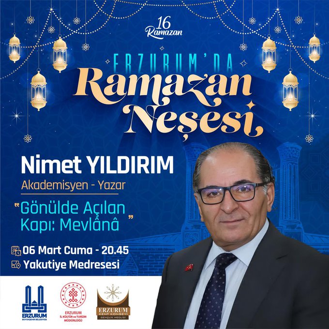 Söyleşi, 6 Mart Cuma günü saat 20.45’te Yakutiye Medresesi’nde düzenlenecek. Ramazan ayı boyunca devam eden “Erzurum’da Ramazan Neşesi” etkinlikleri kapsamında gerçekleşecek programa tüm vatandaşların davetli olduğu belirtildi.