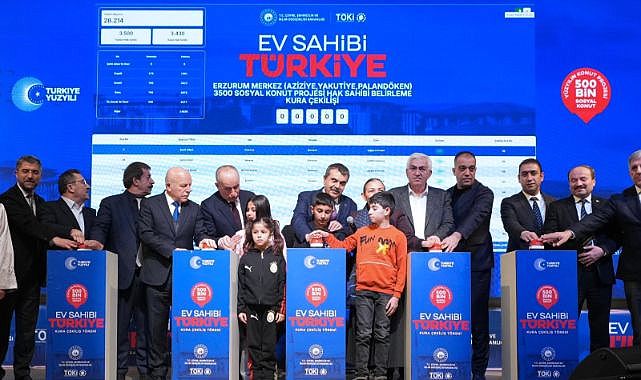 Erzurum Necip Fazıl Kısakürek Kültür Merkezi’nde yapılan kura çekimine vatandaşlar yoğun ilgi gösterdi. Yüzyılın Konut Projesi kapsamında Erzurum’da 4 bin 905 sosyal konut hak sahibi belirleme kura çekim törenini büyük bir coşku ve heyecanla gerçekleştirildi. Milli Eğitim Bakanı Yusuf Tekin, yaptığı konuşmada, "Dirliğin daim olsun Erzurum. Birliğinle, kardeşliğinle, imanla yoğrulmuş yüreğinle nice hayırlar, nice müjdeler göresin" dedi.
