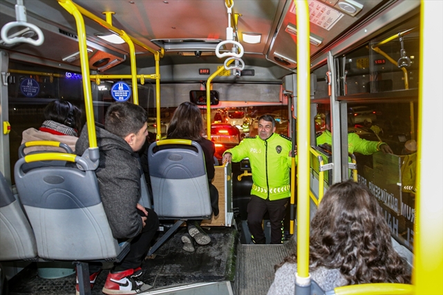 Denetimlere katılan İl Emniyet Müdürü Onur Karaburun, polislerin çalışmalarını izledi, toplu taşıma araçlarına binerek vatandaşlarla sohbet etti.
