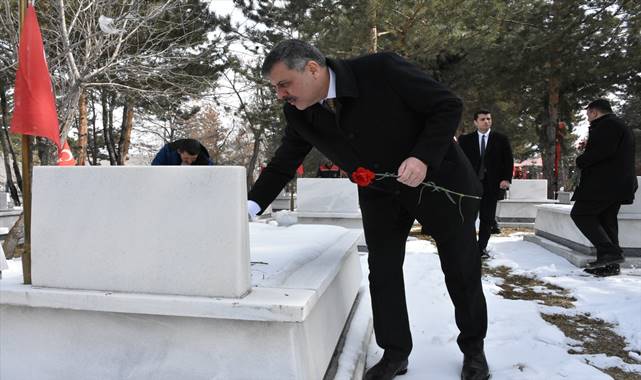 Erzurum Valisi Mustafa Çiftçi, 9. Kolordu Komutanı Tümgeneral Tevfik Algan ve Büyükşehir Belediye Başkanı Mehmet Sekmen, Havuzbaşı Kent Meydanı'nda Atatürk Anıtı'na çelenk sundu.