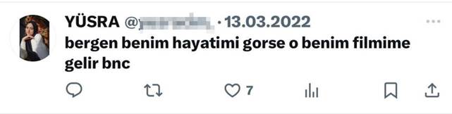 Talihsiz kadın ayrıca ''Bergen benim hayatımı görse bence o benim filmime gelir'' paylaşımı ile yaşadığı zorluğu dile getirmiş.