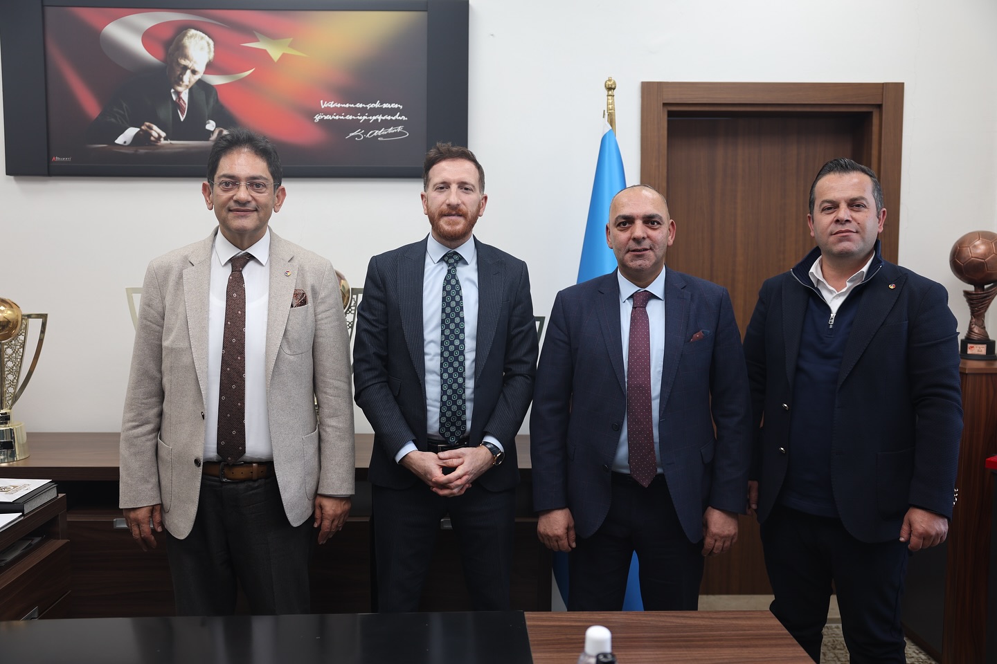 Erzurum Ticaret Borsası (ETB) Yönetim Kurulu Başkanı Hakan Oral, Meclis Başkanı Yavuz Güney ve Yönetim Kurulu Başkan Yardımcısı Turhan Dinler, Erzurumspor FK başkanlığı’na yeniden seçilen Ahmet Dal’ı ziyaret ederek hayırlı olsun dileklerini ilettiler.