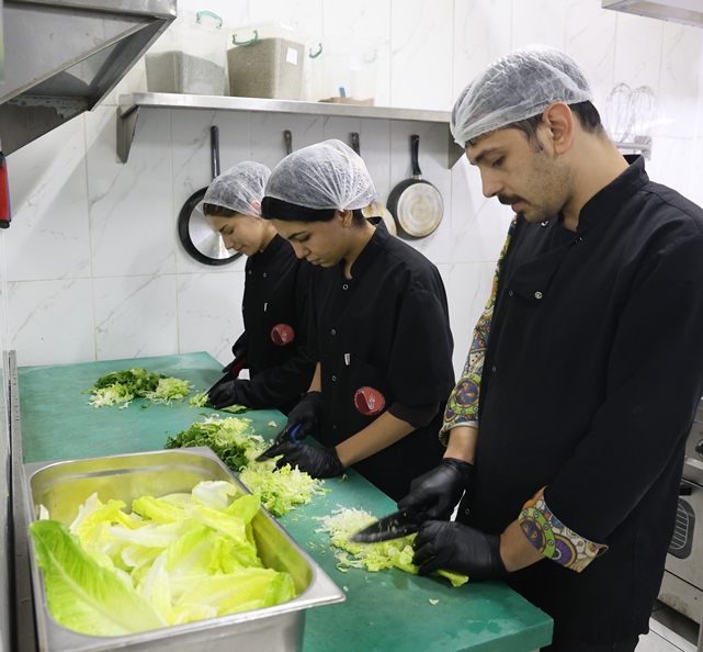 300 öğrenci ve 38 öğretmen kadrosu ile eğitime devam ettiklerini belirten Okul Müdürü Sadrettin Bayram, "Okulumuz bünyesinde uygulama otelimiz bulunmaktadır. Uygulama otelimizde mutfağımız mevcut. Uygulama otelimizde 39 odamız ve 117 yatağımız mevcuttur. Günlük yüzde 25-30 kapasiteyle kış aylarını geçiriyoruz. Yaz aylarında ise yüzde 80 ile yüzde 90 oranlarına kadar çıkabiliyor. Mutfağımızda çevre okullara özellikle belde okullarına yemek yapıp gönderiyoruz. Bin öğrenciye buradan yemek hazırlayıp gönderiyoruz. Bunların tamamında öğretmenlerimizin gözetiminde öğrencilerimiz görev alıyor. Odalarımızın temizliği tamamen öğrencilerimiz tarafından yapılıyor. Bunun sonucunda 2025 yılında 19 milyon ciro elde ettik. Bu cironun büyük bir kısmını öğrencilerimize harçlık olarak, çalışma alanlarımızın iyileştirilmesi ve malzeme alımında bu cirodan faydalanıyoruz. Geriye kalan kısmı da bakanlığımıza aktarıyoruz" dedi.