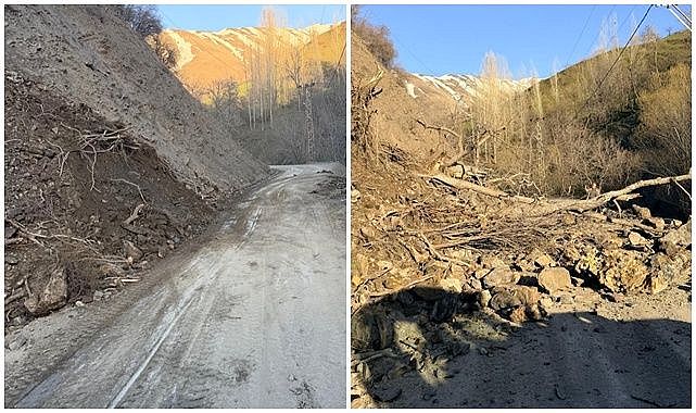 Van'ın Bahçesaray ilçesinde mahalle yoluna dökülen heyelan temizlendi.