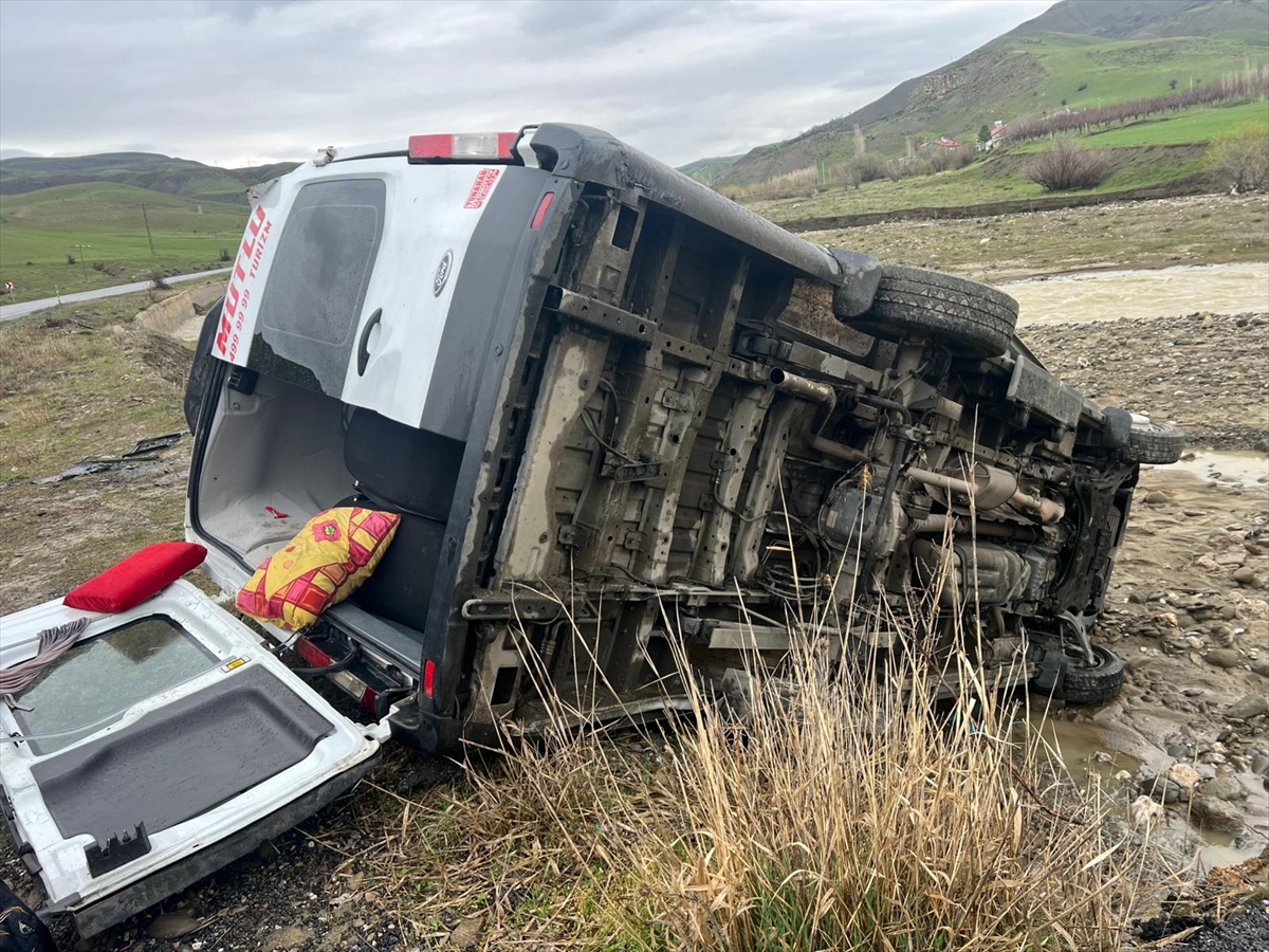 Bulanık-Muş kara yolunun Karakale köyü yakınlarında sürücüsü öğrenilemeyen 49 ABM 796 plakalı minibüs, kontrolden çıkarak yol kenarındaki dere yatağına devrildi.