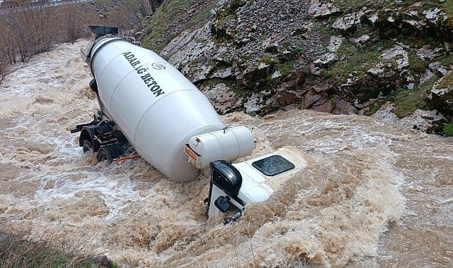 Tatvan'daki özel bir firmaya ait beton mikseri, Hizan'dan Tatvan istikametine seyir halindeyken belirlenemeyen bir nedenle kontrolden çıkarak yol kenarındaki dereye yuvarlandı.
