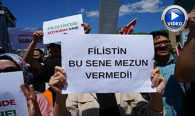 Iğdır Üniversitesi akademisyen ve öğrencileri, İsrail'in kuşatma altındaki Gazze Şeridi'ne 7 Ekim'den bu yana düzenlediği saldırılara tepki göstererek "Filistin" temalı mezuniyet yürüyüşü düzenledi.