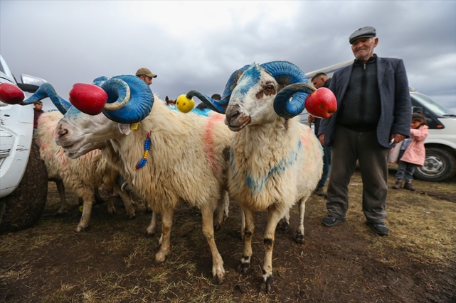 Kars'ta çeşitli renklerle boyanan, boyun ve boynuzlarına takılan bereket sembolü yiyeceklerle süslenen koçlar, asırlardır sürdürülen "çoban bayramı"yla sürüye giriyor.