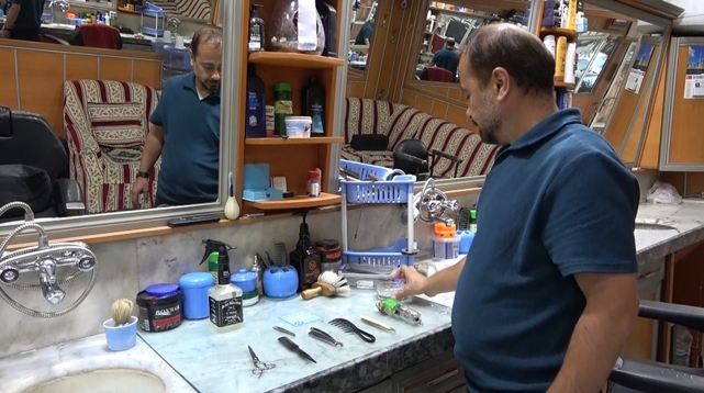 Siirt’te 26 yıllık berber 48 yaşındaki Aydın Ekin, modern tıraş ve fön yerine geleneksel düz tıraş yapmayı sürdürüyor. Kalfalığı döneminden kalma müşterisi olduğunu belirten Ekin, eski dükkanında ekmeğini kazanmaya devam ediyor.