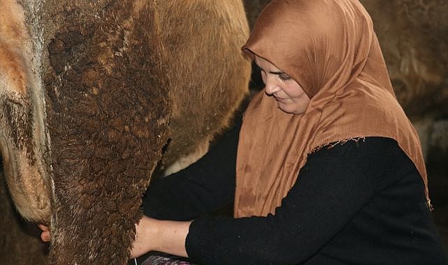 "Eşim hayvanların yemini ve samanını veriyor. Ben ineklerimi sağıyorum. TİGEM'den devlet destekli 15 tane etçi ırk gebe düve aldık. Devletten destek alarak ahırımızı da büyütmek istiyoruz. 15 yıllık evliyim. Aslen Aksaraylıyım. Ağrı merkezde evimiz var. Eşim köyü sevdiği için köyde de ev yaptık, sonra hayvancılığa başladık. 7 yıldır da bu işin içindeyiz. 5 çocuğumla nasıl ilgileniyorsam, hayvanlarla da o şekilde ilgileniyorum."