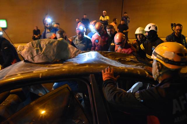 Tatbikatta, 1950 metre uzunluğundaki tünelde senaryo gereği meydana gelen tek taraflı trafik kazasında araçta sıkışan 2 yaralı ekiplerce çıkarıldı.