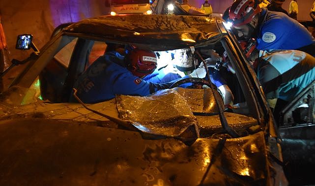 Tatbikatta, 1950 metre uzunluğundaki tünelde senaryo gereği meydana gelen tek taraflı trafik kazasında araçta sıkışan 2 yaralı ekiplerce çıkarıldı.