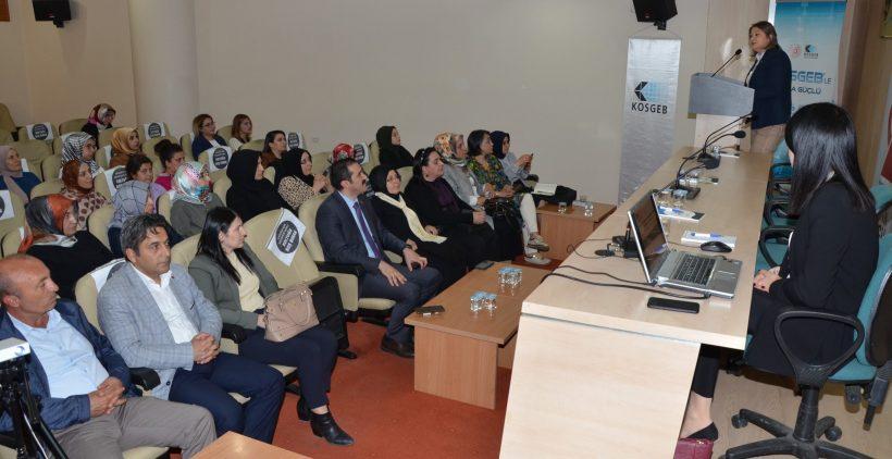 Küçük ve Orta Ölçekli İşletmeleri Geliştirme ve Destekleme İdaresi Başkanlığı (KOSGEB) Erzurum İl Müdürlüğü ve TOBB Erzurum Kadın Girişimciler Kurulu (KGK) işbirliğinde ETSO Meclis Salonu’nda düzenlenen toplantıda girişimcilere KOSGEB destekleri anlatıldı.