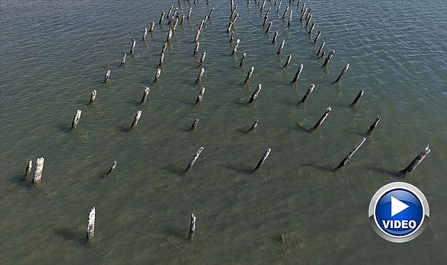 Gölün çekilmesiyle asırlık iskelenin ayakları ortaya çıktı
