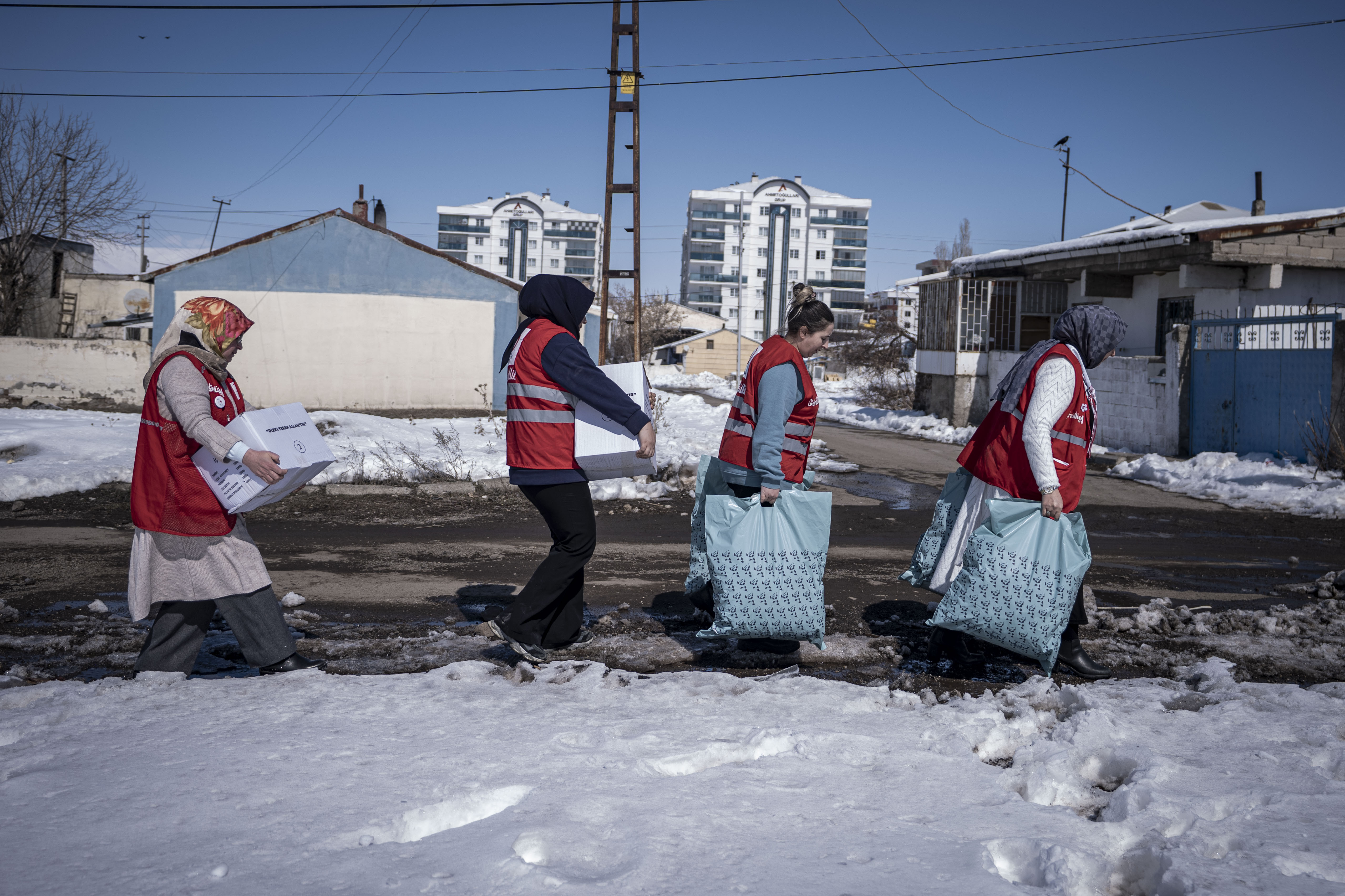 Türk Kızılay Erzurum Şubesi Kadın Başkanı Esra Kaplanoğlu, AA muhabirine, gönüllü kadınlarla ihtiyaç sahiplerine yardımlar ulaştırdıklarını, bunun için gece gündüz çalıştıklarını söyledi.